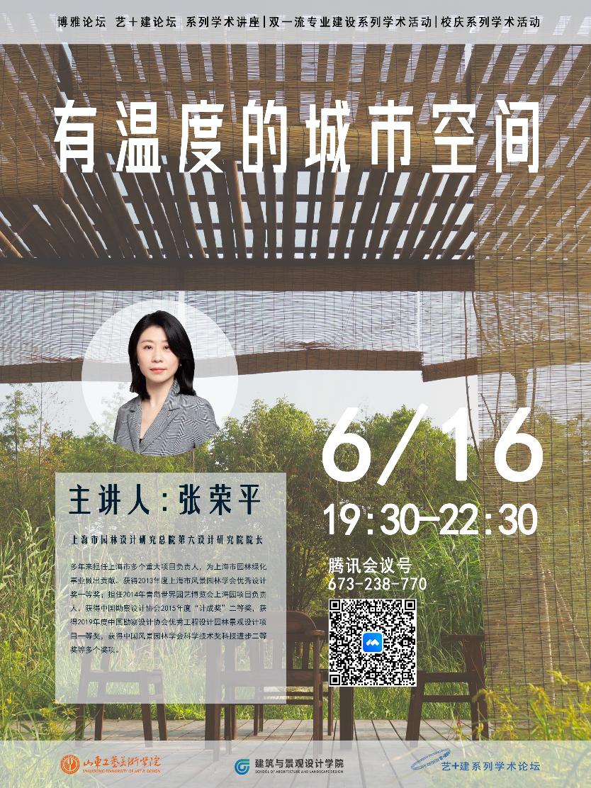讲座将以《有温度的城市空间》为题,介绍公园城市战略提出的时代背景,结合多年来城市公园、城市更新等实施案例,从规划、建筑、景观三大专业角度出发,探索城市最具吸引力,也最具温度的城市空间。