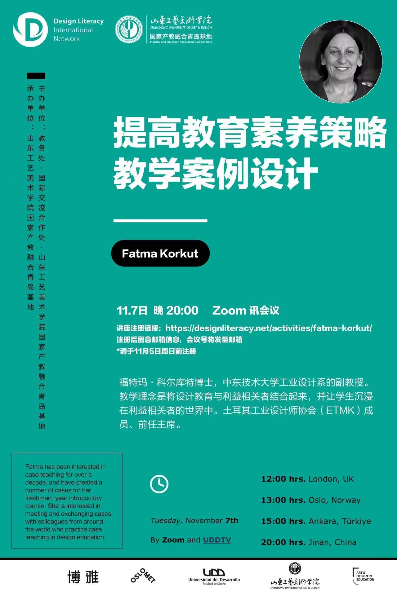 讲座平台:ZOOM,讲座注册链接:https://designliteracy.net/activities/fatma-korkut/
