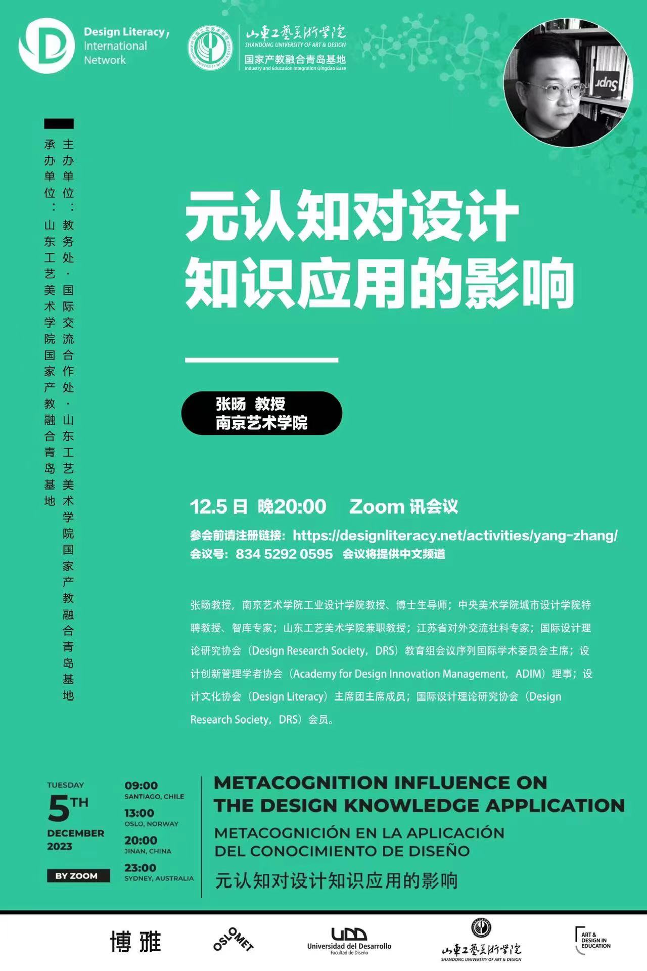 讲座平台:ZOOM,参会前请注册链接:https://designliteracy.net/activities/yang-zhang/