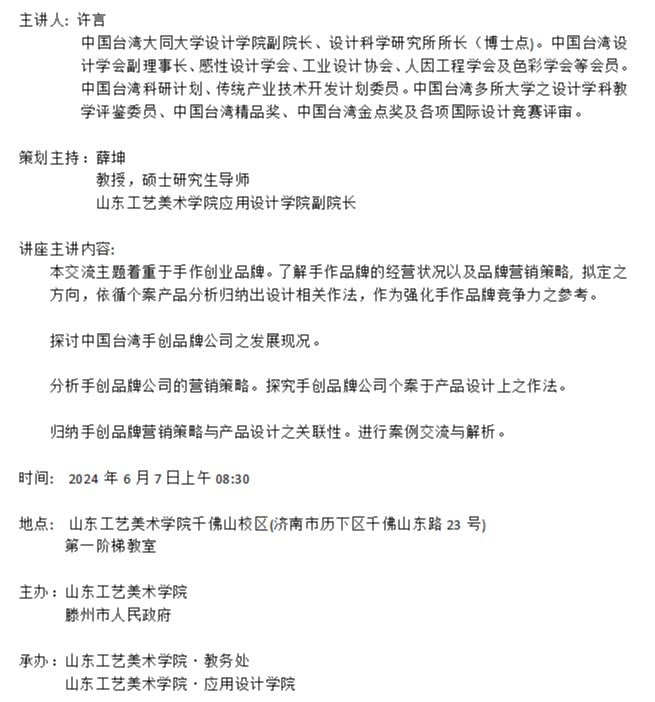 讲座预告:手创品牌商品之设计与营销