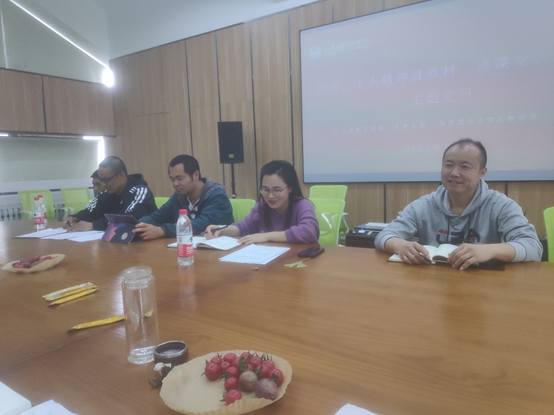 根据《中国共产党支部工作条例(试行)》关于党支部定期开展主题党日,组织党员集体学习、组织生活等要求和《山东省教育厅(中共山东省委教育工委)办公室关于做好党的二十大精神进教材工作的通知》的文件精神,认真落实马克思主义学院教师第一党支部本年度工作重点,2023年4月3日上午,马克思主义学院教师第一党支部与公共课教学部第二党支部在长清校区公共课教学部会议室开展“从思政课程到课程思政——党的二十大精神进教材、进课堂、进头脑”联合主题党日。活动由公共课教学部第二党支部书记冯玉娟主持,党支部全体党员参加此次活动。