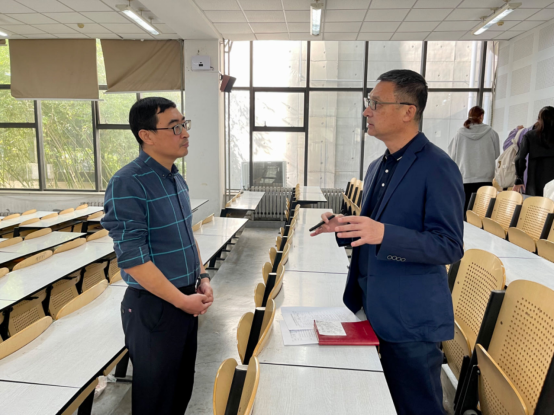 课后,韩文涛与孙传辉老师进行了亲切交流,针对学生到课率、课堂抬头率、师生互动等具体课堂情况进行了点评,在对其教学水平和能力给予肯定的同时,结合当前思政课所面临的形势和主要任务,就教学内容、教学方法、教学形式、理论联系实际以及如何提高课堂教学效果等方面提出了意见和要求,并给出指导性建议。