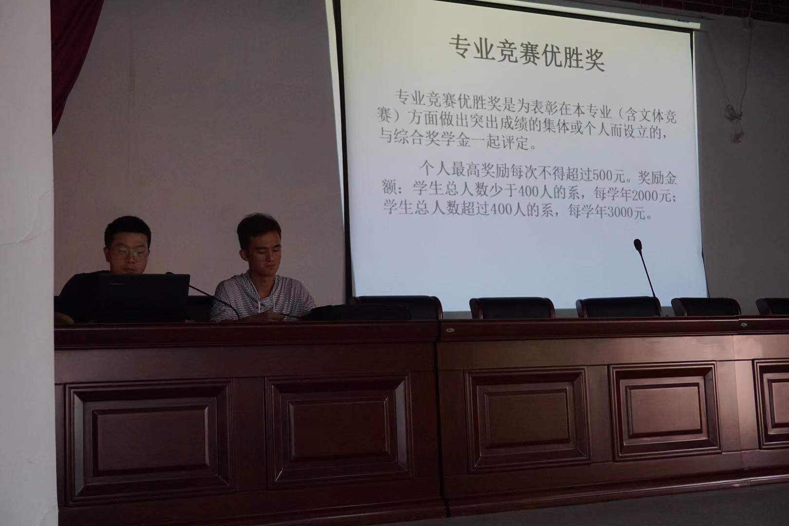 杨友森老师首先就威尼斯官网的奖励及资助体系进行了详细讲解,随后向大家介绍了威尼斯官网资助体系的工作宗旨以及高校经济困难学生认定的方式。并邀请17级优秀学生干部、国家励志奖学金获得者董贺旺就个人的学习经历、学生干部经历以及个人未来计划进行了讲述。讲述过后,杨老师与董贺旺同学现场就新生在学习、生活上的疑问进行了解答。