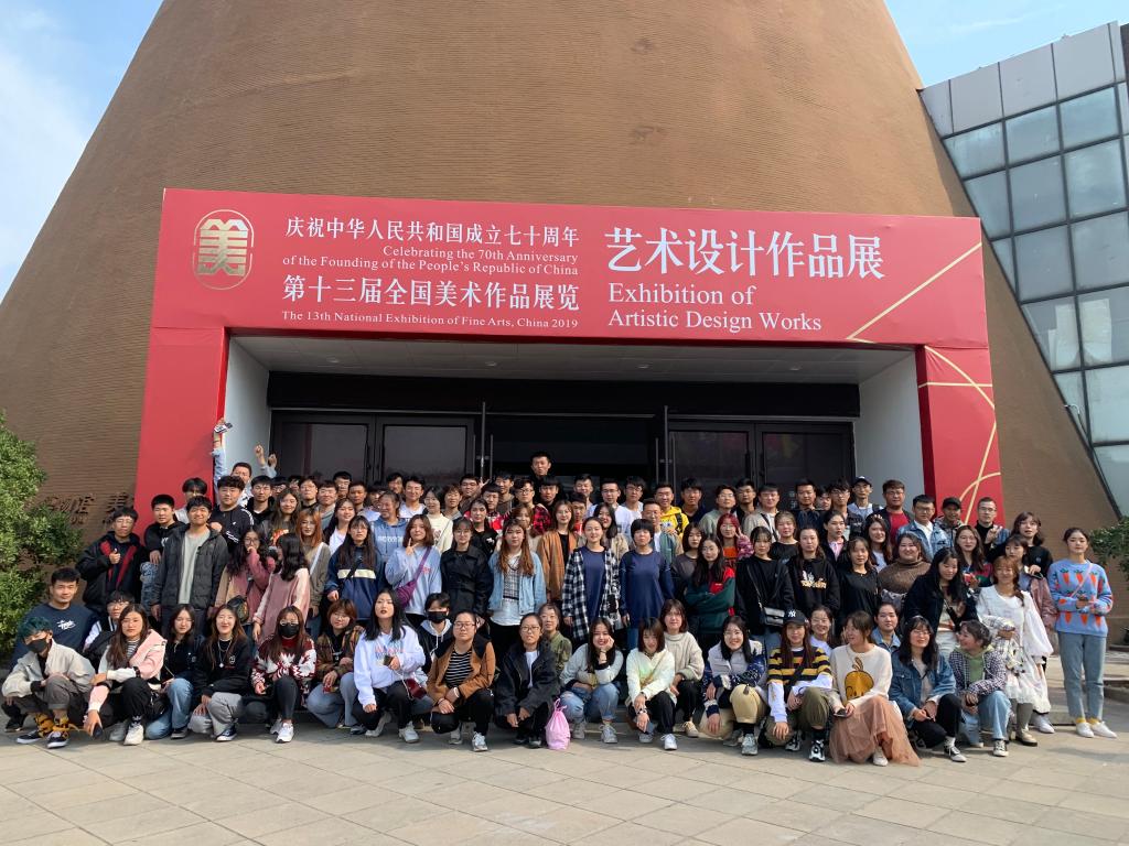 10月20日,创新创业学院(淄博陶瓷学院)辅导员杨友森带领创新创业学院(淄博陶瓷学院)2019级全体新生及部分二年级学生,到长清校区参观第十三届全国美展艺术设计作品展。