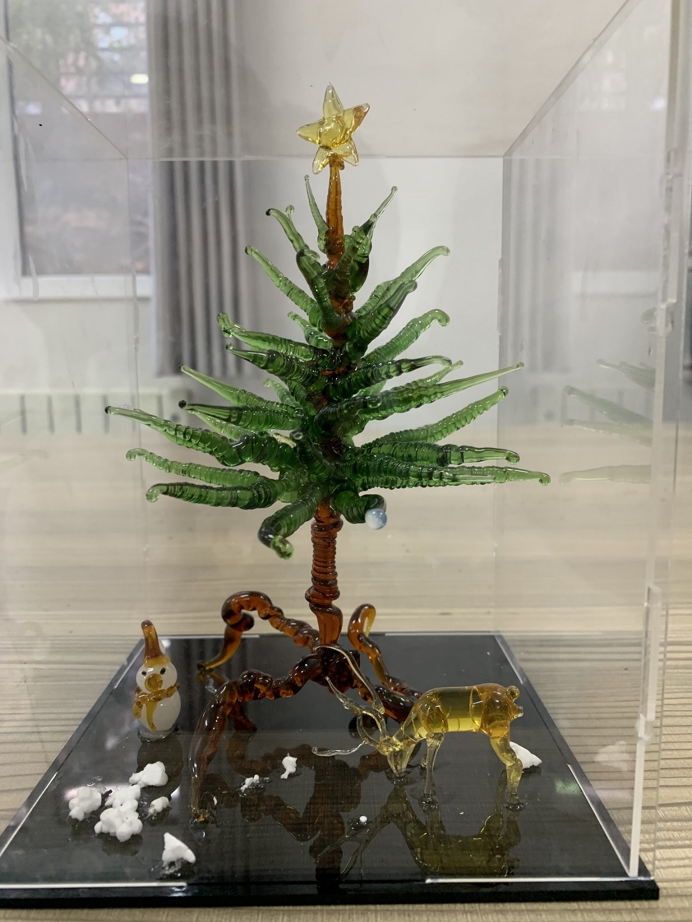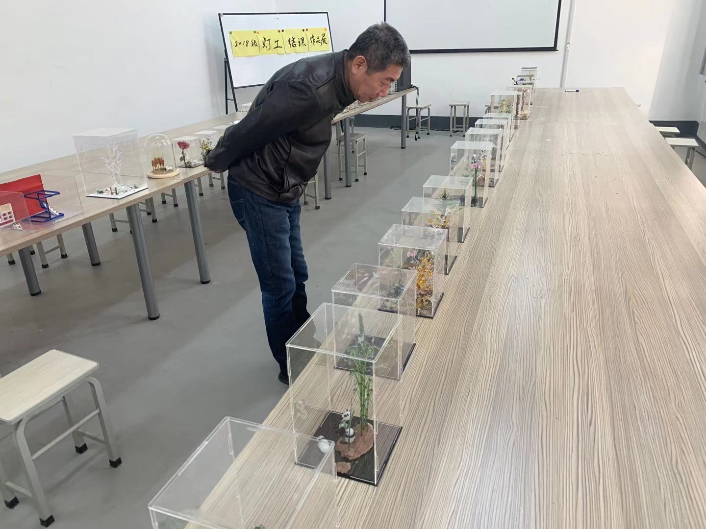 灯工课程是18级雕刻艺术设计班2019-2020学年第一学期的重要课程。在山东省工艺美术大师、山东省琉璃艺术大师李华刚教授的指导下,学生们通过近八周的学习与摸索,经历了从不断的调试温度到掌控温度,从玻璃丝一次次拉断到拉丝张弛有度,从玻璃的零零碎碎到最终完成了课程作业作品的整个过程。汇报展上,同学们分别讲述了个人作品的制作过程与心得,李华刚教授在同学汇报的过程中对学生的作品进行了点评。