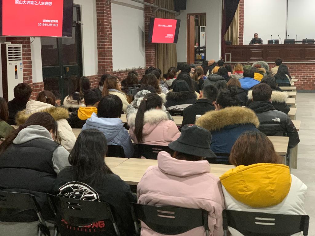 12月18日晚,创新创业学院(淄博陶瓷学院)“原山大讲堂”继续开讲。院长耿大海以“人生理想”为主题,为学生举办讲座,与学生共话理想,畅想设计未来。