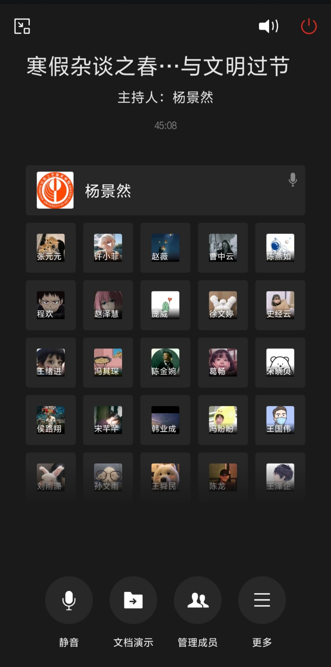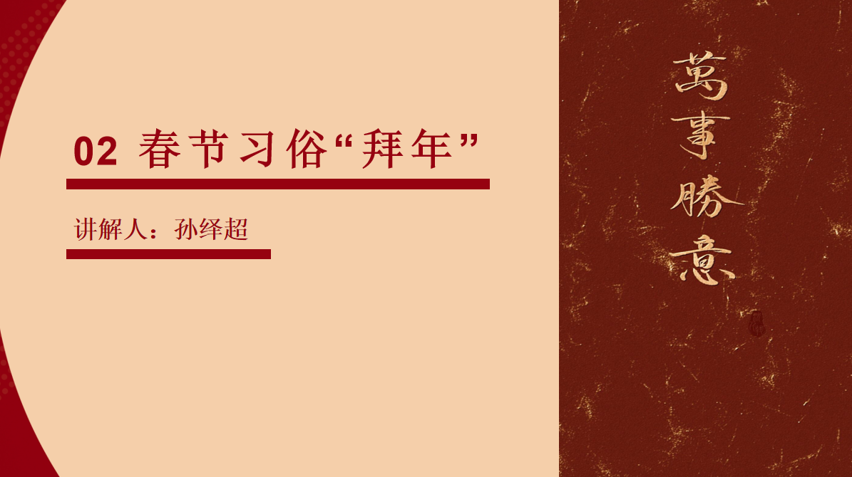 活动开始,由学生会外联部同学进行简单的开场介绍,而后同学们依次发言。大家从“年”的由来讲到“拜年”的习俗,由年夜饭说到放鞭炮,还有山东地区过春节独有的地域特色,以及古代和现代过年习俗的异同之处。同学们不仅分享了见闻,也展示了自己在寒假期间的摄影作品和此次过年的感受,最后还不忘提醒大家要遵守各地的疫情防控规定,文明过节。