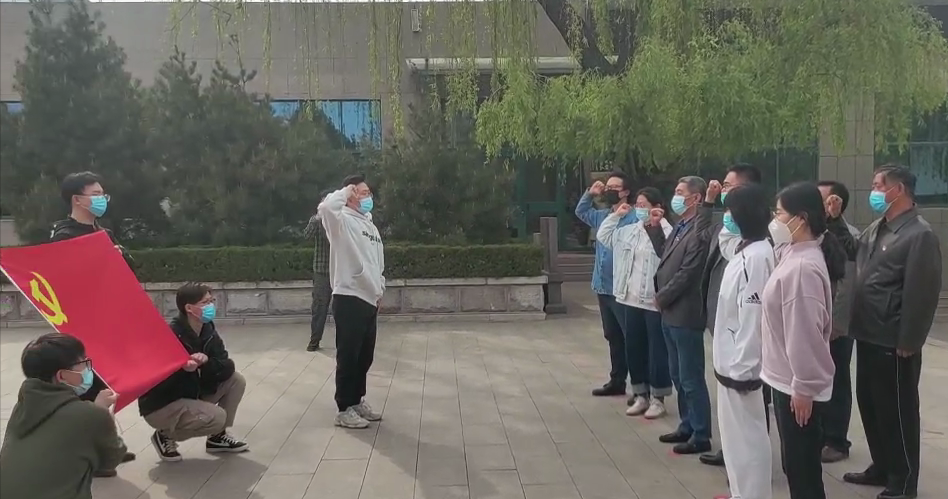 “焦裕禄精神”微党课后,由教工党支部书记杨友森领誓,全体党员同志重温入党誓词。