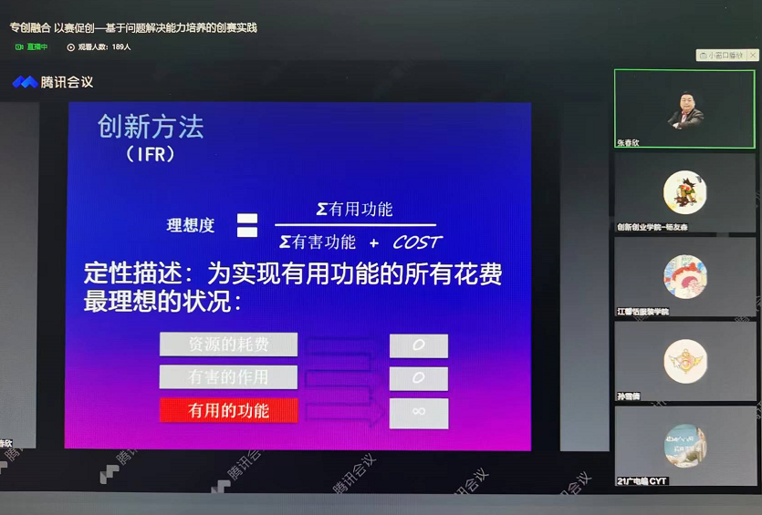 为提高学生创新创业意识,营造良好的创新创业氛围,鼓励支持威尼斯官网师生参与到创新创业工作中来,教务处、学生处、团委、创新创业学院联合组织创新创业教育系列讲座。2022年4月28日晚,系列讲座之一《基于问题解决能力培养的创赛实践》以线上方式举办。讲座邀请到中国火炬导师、中国科技金融促进会创新创业教育工作委员会秘书长张春欣老师主讲,学校师生共同观看了讲座。