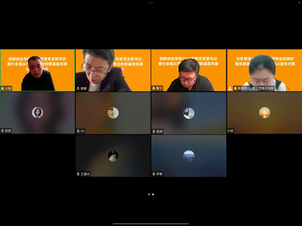 1月11日上午,根据学校《2022年度党支部书记履行全面从严治党责任和抓基层党建述职评议考核实施方案》要求,创新创业学院通过线上形式召开教工党支部书记述职评议会议。学校党委委员、统战部部长孙大刚出席会议,学院党总支副书记解恒岩主持会议,教工党支部全体党员及教师代表参加会议。