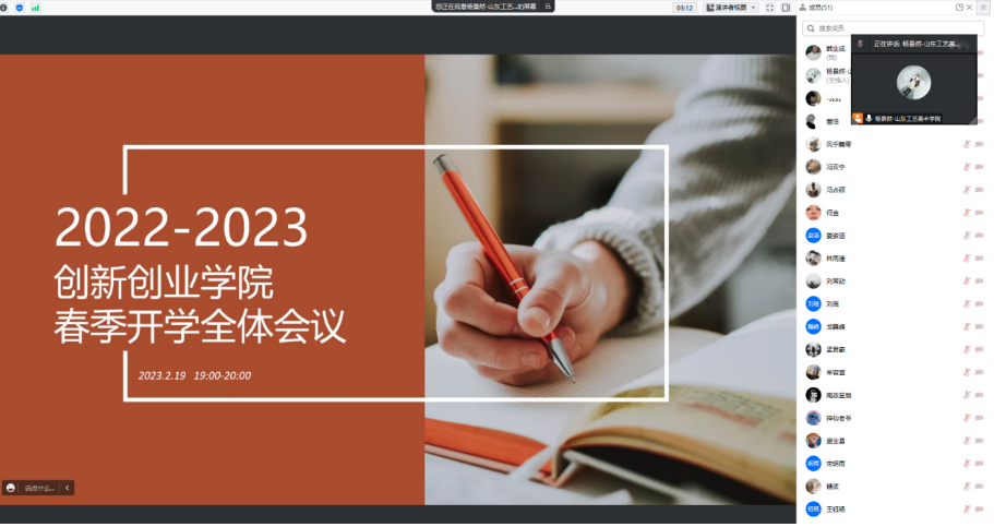 2月19日晚,在学校的统一安排下,辅导员杨景然以线上会议的形式组织召开学院2023年春季学期“开学第一课”,要求全体学生关注自身安全,增强安全意识,做好校外实习就业、专升本学习的个人安全防护,遵守校内公寓管理规定,时刻防范电信诈骗,保持良好的心态,及时与学院保持沟通交流。会议重点强调了最新的疫情防控工作要求和安排,传达了新学期开学后共青团相关工作。
