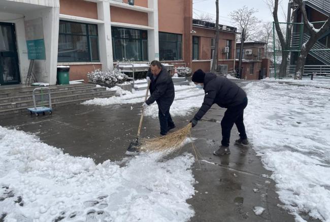 学院团总支号召广大团员和青年学生自发组织起来,充分发挥入党积极分子、团员先锋模范带头作用,与学院老师一起,高效参与到扫雪除冰行动中,用自己的实际行动践行着“爱校如家”的精神。通过师生共同努力,学院各出入口和日常活动场地已基本实现了畅通,同学们更加深刻地认识到了后勤工作人员维护校园环境的辛苦。