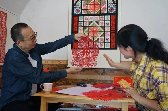 2019年7月6日,潘鲁生调研陕北民间剪纸工艺,为国庆招待会剪纸装饰项目采风。