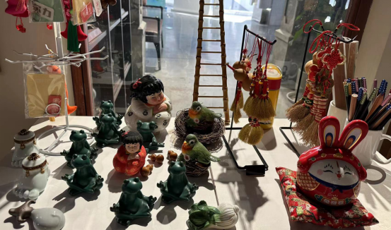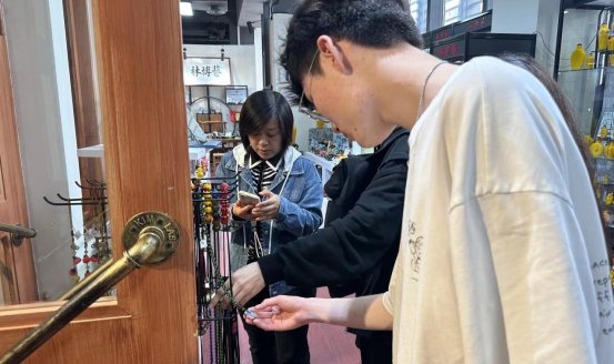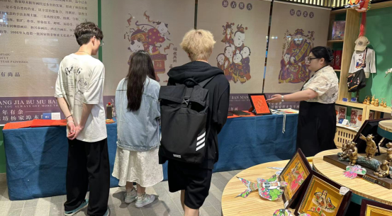 实践教学考察第二小组到达山东手造展示体验中心后,主要考察了以非遗为主题的商铺,包括黑陶、鲁绣、葫芦雕刻、面塑、琉璃、皮影、铁锅等非遗项目。同学们观察了商场的空间设计、店面的内部摆放对客流量以及顾客群体的影响,同时对店面负责人进行了关于消费者购买状况、喜好状况的调研。