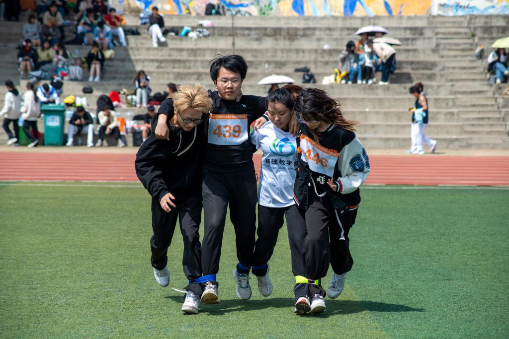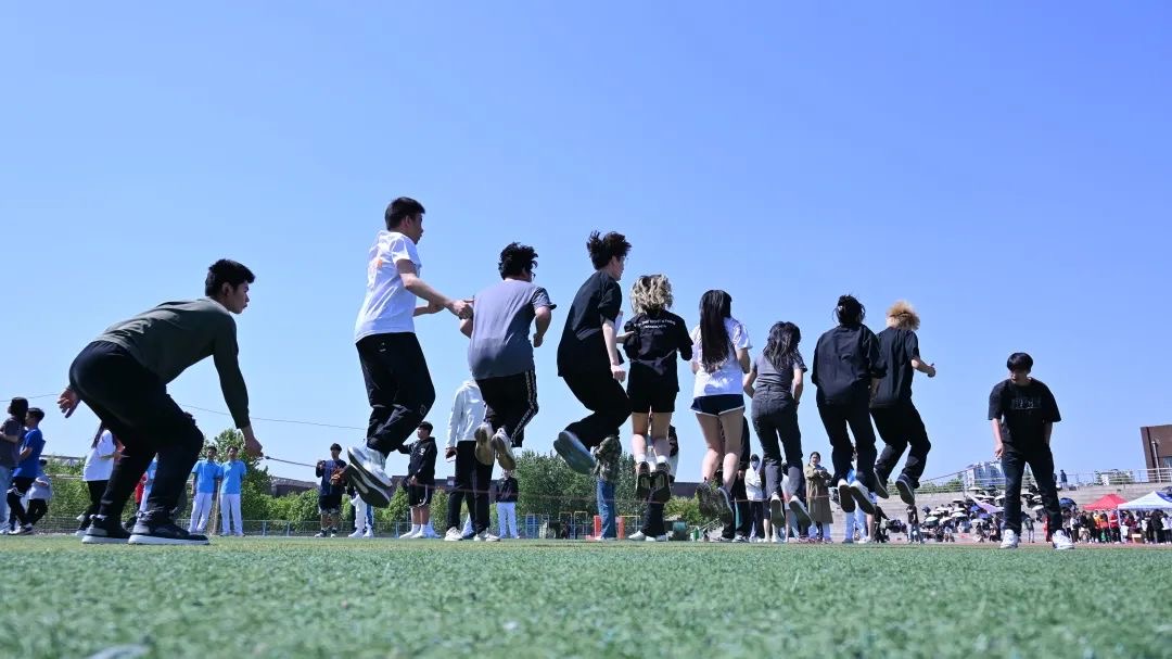 集体项目是一项考验队员默契和合作能力的项目。基础教学部的教职工和同学们们在绿茵场上默契地协同前行,旗帜飘扬,步伐稳健。他们紧密配合,一起向着“更快更高更强”进发。