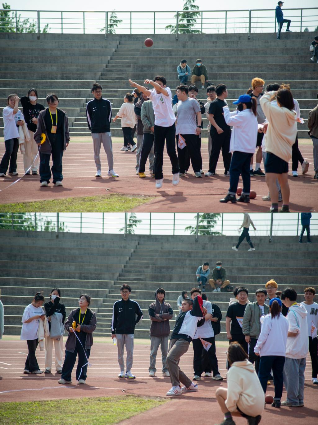 实心球项目中,基础教学部的运动健儿们展现出了精湛的球技。他们运用技巧和力量,带着期望一次次投出的不仅仅是实心球,更是奋斗的决心。