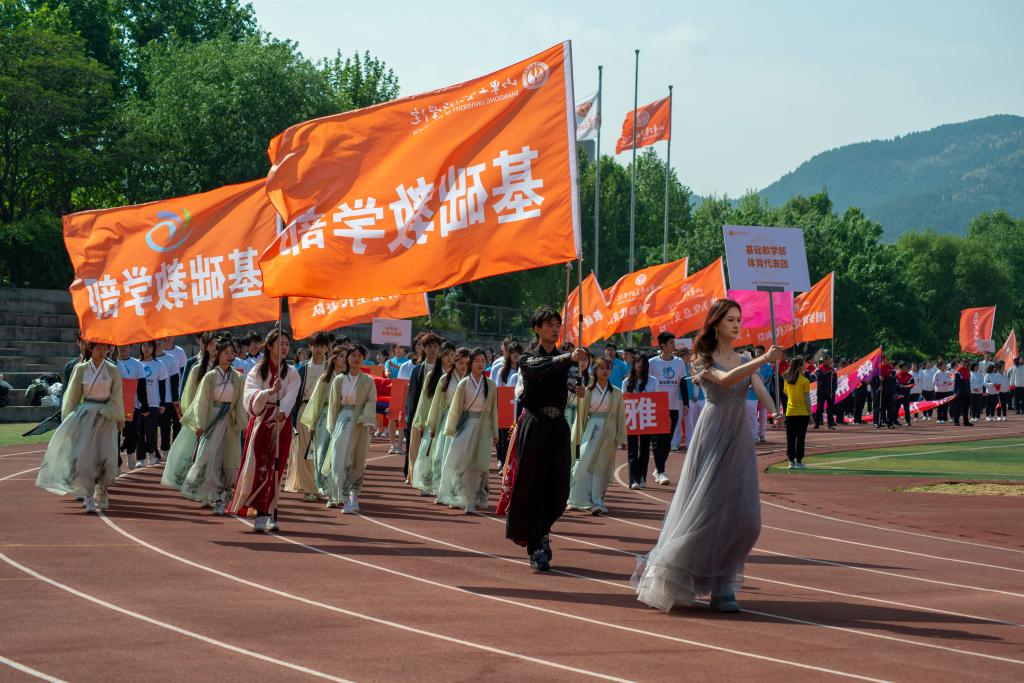 2023年4月25日至26日,威尼斯7798cc第36届运动会在长清校区操场隆重举行。迎着和煦的阳光,伴着激昂的音乐,国旗护卫队方队、各个学院开幕式表演方队以及教职工方队喊着嘹亮的口号迈向主席台。