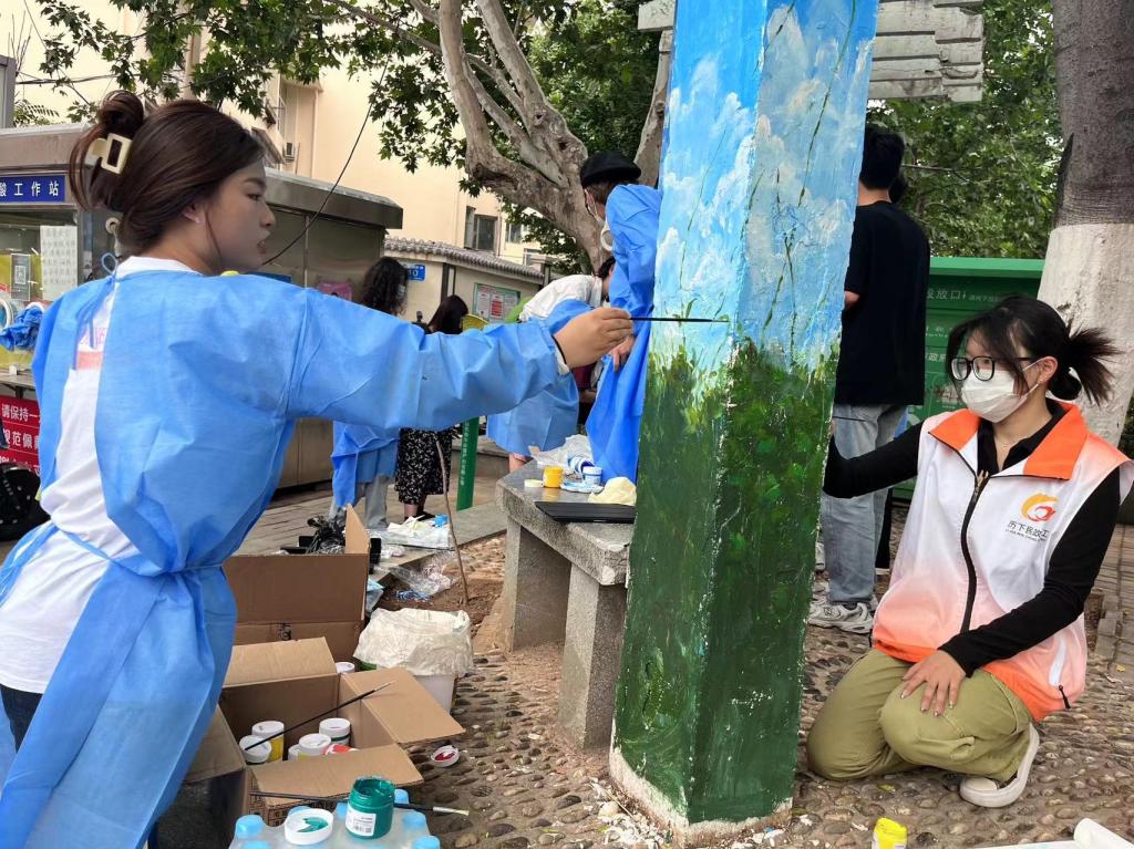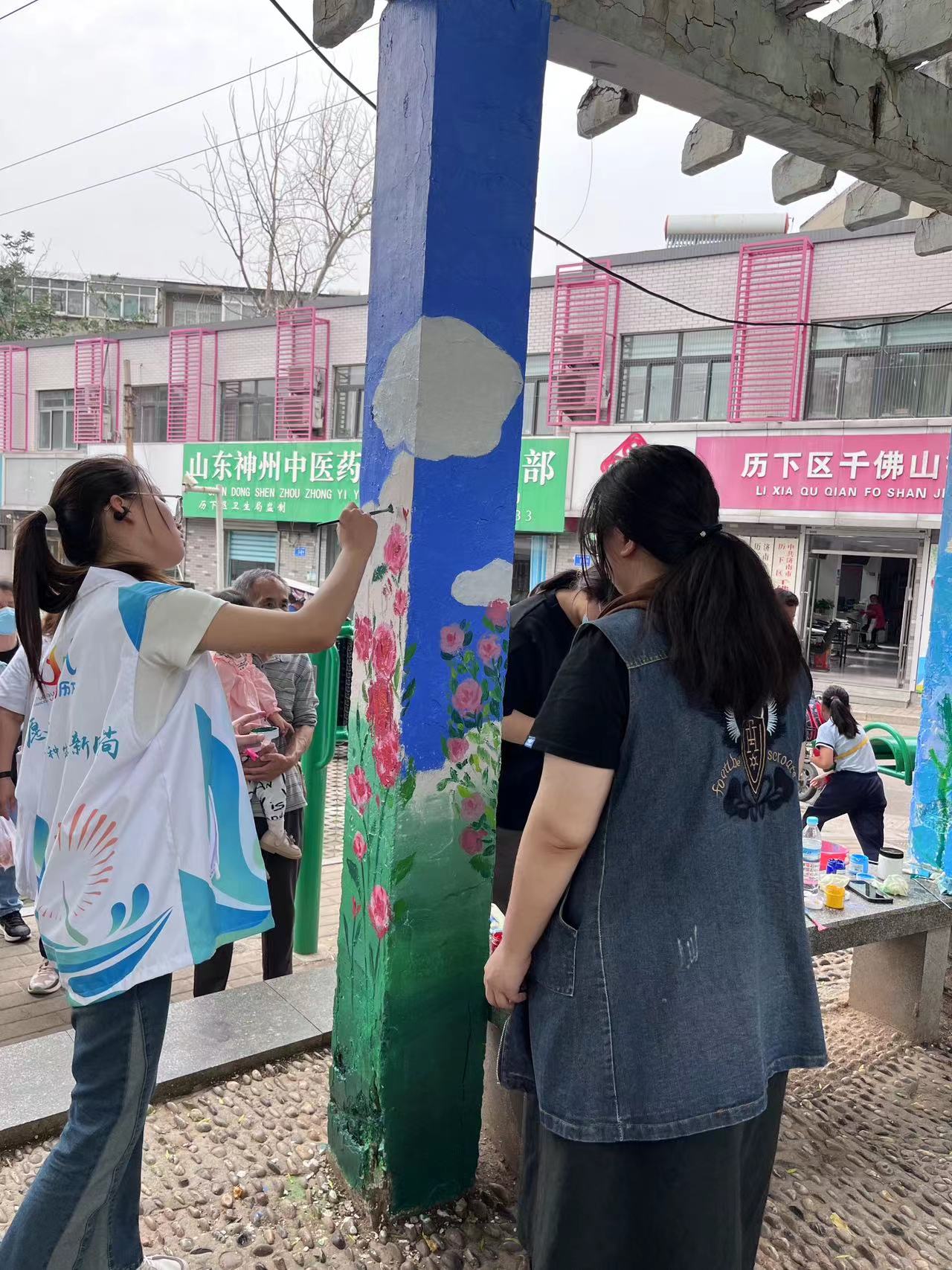 为了全面学习贯彻党的二十大精神,推进学习贯彻习近平新时代中国特色社会主义思想主题教育走实走深,基础教学部团总支组织22雕刻一二班团支部和22视觉传达设计联合团支部走进济南市千佛山街道千佛山东路社区,开展“与爱约‘绘’”文化艺术实践活动。