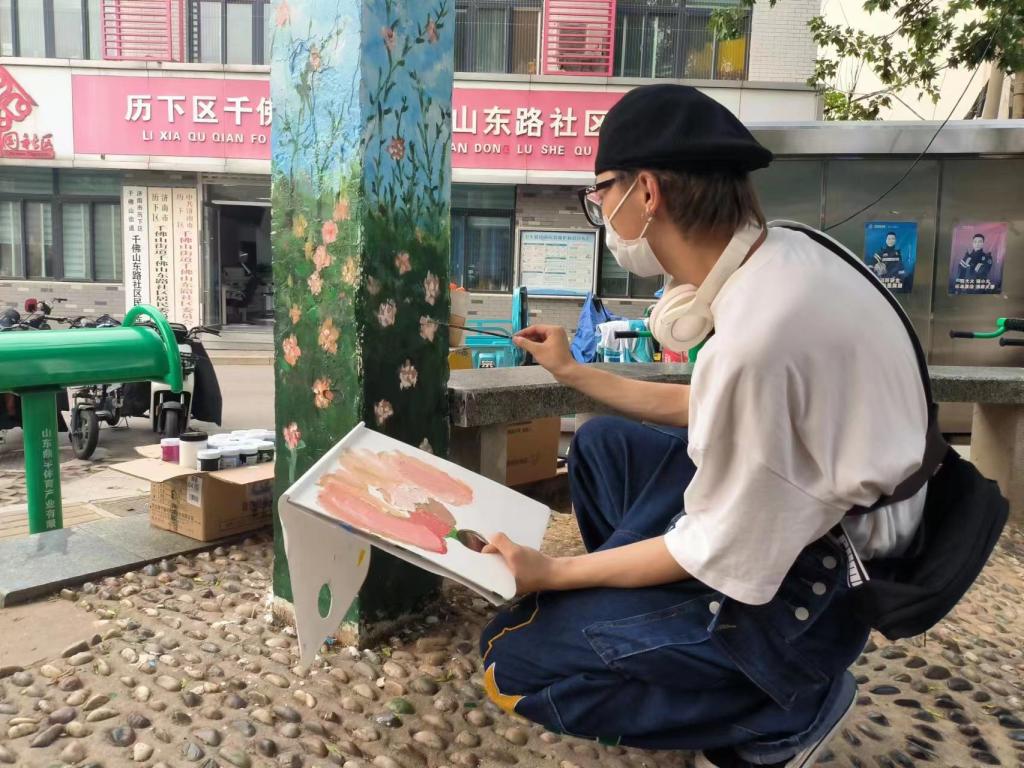 团员青年们热情高涨,共同完成墙面清理、刷底、起稿、弹线、上色等工作,期间有许多社区居民和小朋友前来观看,希望通过此次活动让更多的小朋友爱上绘画,遇见不一样的人生。
