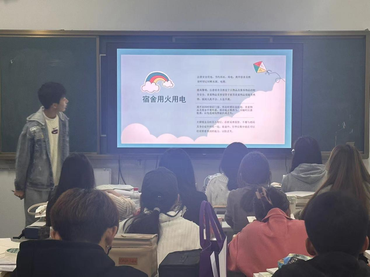 本次班会从交通安全、心理健康、宿舍用电、网络贷款、网络虚假信息等方面向同学们普及安全知识,通过安全教育提醒大家“安全无小事,警钟需长鸣”。