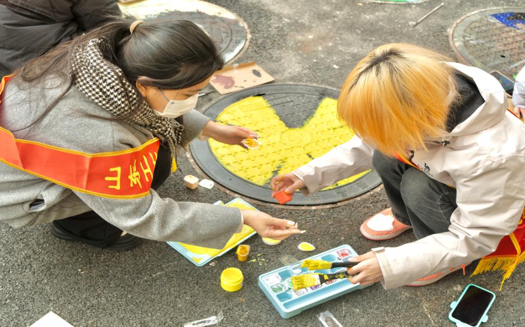 活动现场,气氛热烈而有序。学生们热情高涨,积极参与。他们用一支笔,一双手,认真绘出心中所想。经过一番努力,原本不起眼的井盖“穿上”了漂亮的“外衣”,成为一道道夺目的风景线。