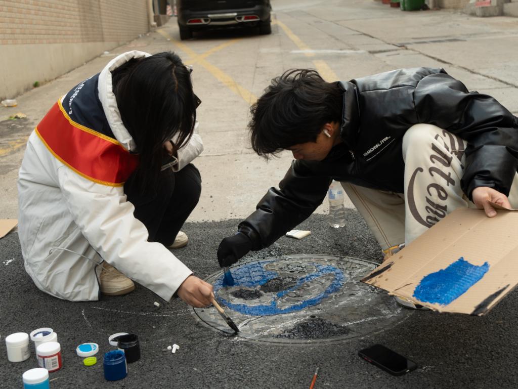 为加强学生的美育教育,增强环保意识,为校园环境增添一抹亮色。11月25日上午,基础教学部团总支组织青年团员在千佛山校区开展井盖作画实践活动。此次活动旨在利用井盖的凹凸效果和纹理,进行创意、上色、钩边,为校园内的井盖设计出别具一格的图案。