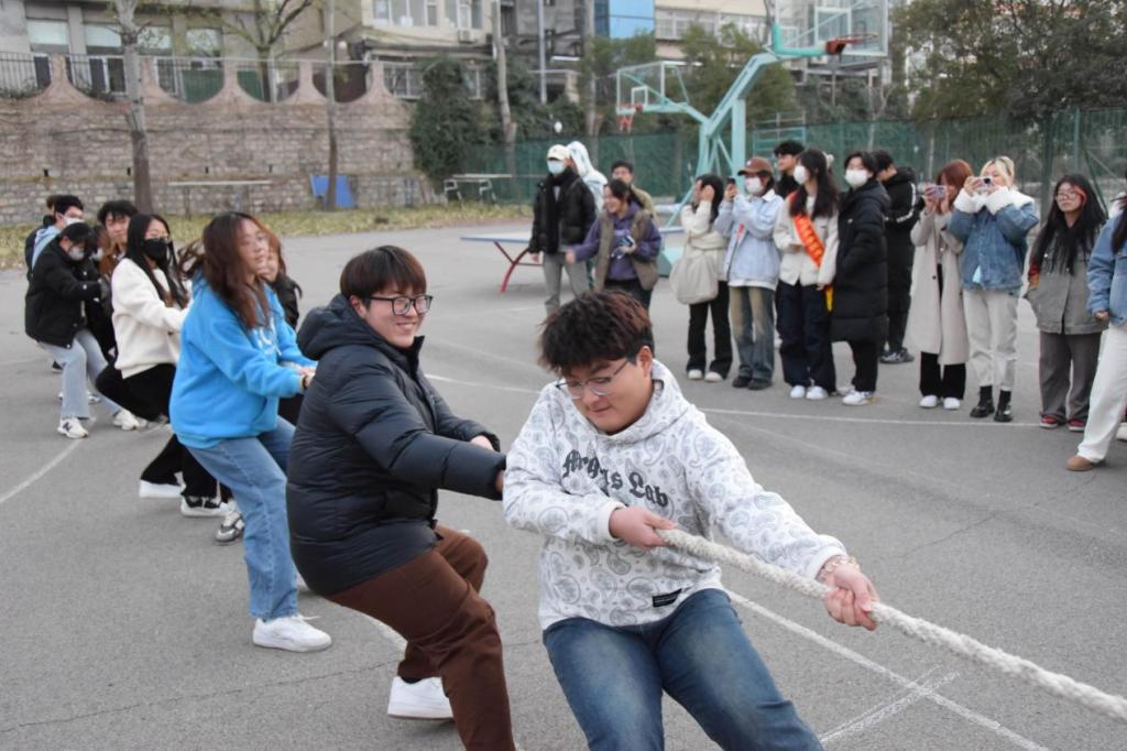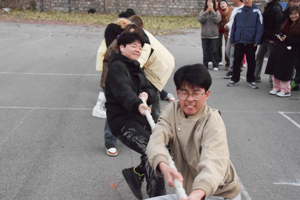 为了丰富同学们的课余生活,增强团队凝聚力,提升同学们的身体素质,12月6日下午,基础教学部在千佛山校区操场举办了“激情飞扬,团结友爱”拔河比赛。
