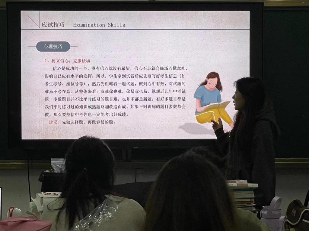 在应试心理调适方面,各班级为同学们提供了如何保持心理平衡、克服焦虑情绪以及提升自信心的策略与建议。此外,各班级强调了充分备考的重要性:“唯有对考试科目进行深入复习和充分准备,方能减轻考试前的紧张情绪,从而更好地应对考试。”