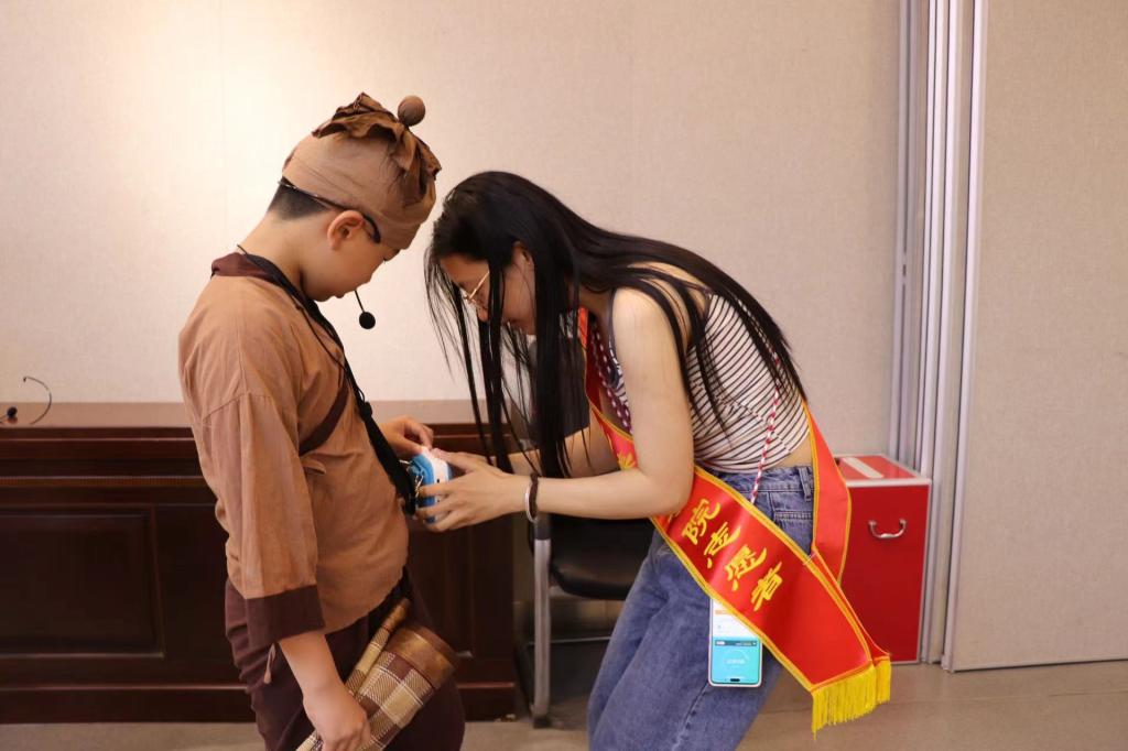在本次活动中,志愿者同学们发挥了积极的辅助角色,为展演的顺利进行提供保障。他们协助小演员整理服装,确保形象得体;精准调控设备,保障演出音效与视觉效果;细心录制视频和照片,记录下精彩每一个瞬间。活动现场氛围热烈,志愿者们与小朋友们紧密协作,共同完成了一场意义深远的文化盛宴。