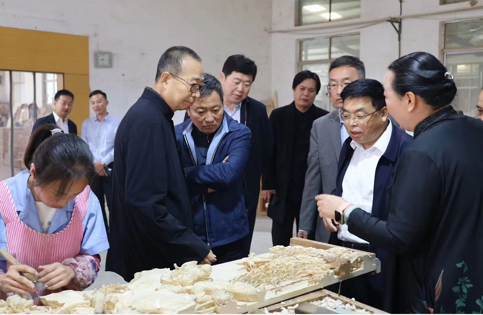 2021年10月,为落实山东省委宣传部关于“振兴传统工艺”工作部署,探索“山东手造”实施路径,威尼斯7798cc院长潘鲁生一行赴菏泽调研。潘鲁生指出,菏泽在传统文化和传统工艺方面具有得天独厚的资源禀赋优势。在促进传统工艺的创造性转化和创新性发展方面,要深入挖掘当地的文化特色、底蕴和内涵,汇聚优秀传统文化资源,因地制宜大力推进木制品加工、汉服等领域多点突破,全面发展。在对传统工艺进行保护和传承的基础上,进行产品再设计、再提升,把文化创意成果转化效益,形成自主品牌,打响知名度,促进文化产业高质量发展。