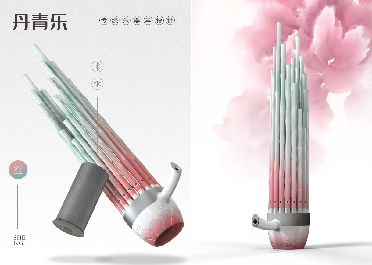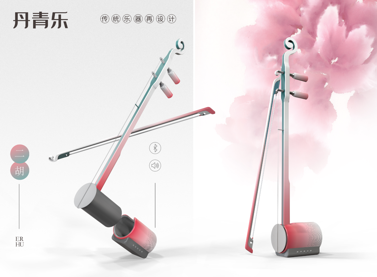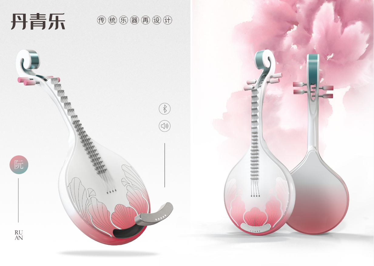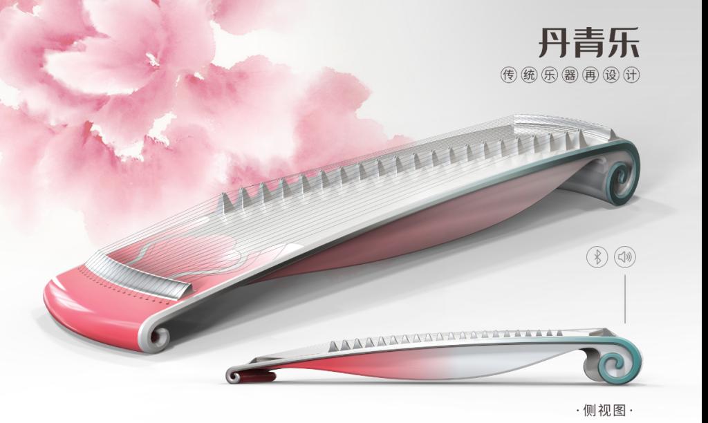 设计团队在潘鲁生的指导下,立足当地产业,突出当地“牡丹”品牌,对古琴、古筝、笙、琵琶、阮琴、二胡等传统乐器进行再设计。再设计的乐器,在延续传统泡桐材质与加工方式的基础上,在产品中嵌入蓝牙音响等录音播放设备,产品局部融入牡丹元素,突出地域文化特征,并从牡丹中提取色彩要素,呈现出洁净鲜明,简洁时尚的视觉特征。