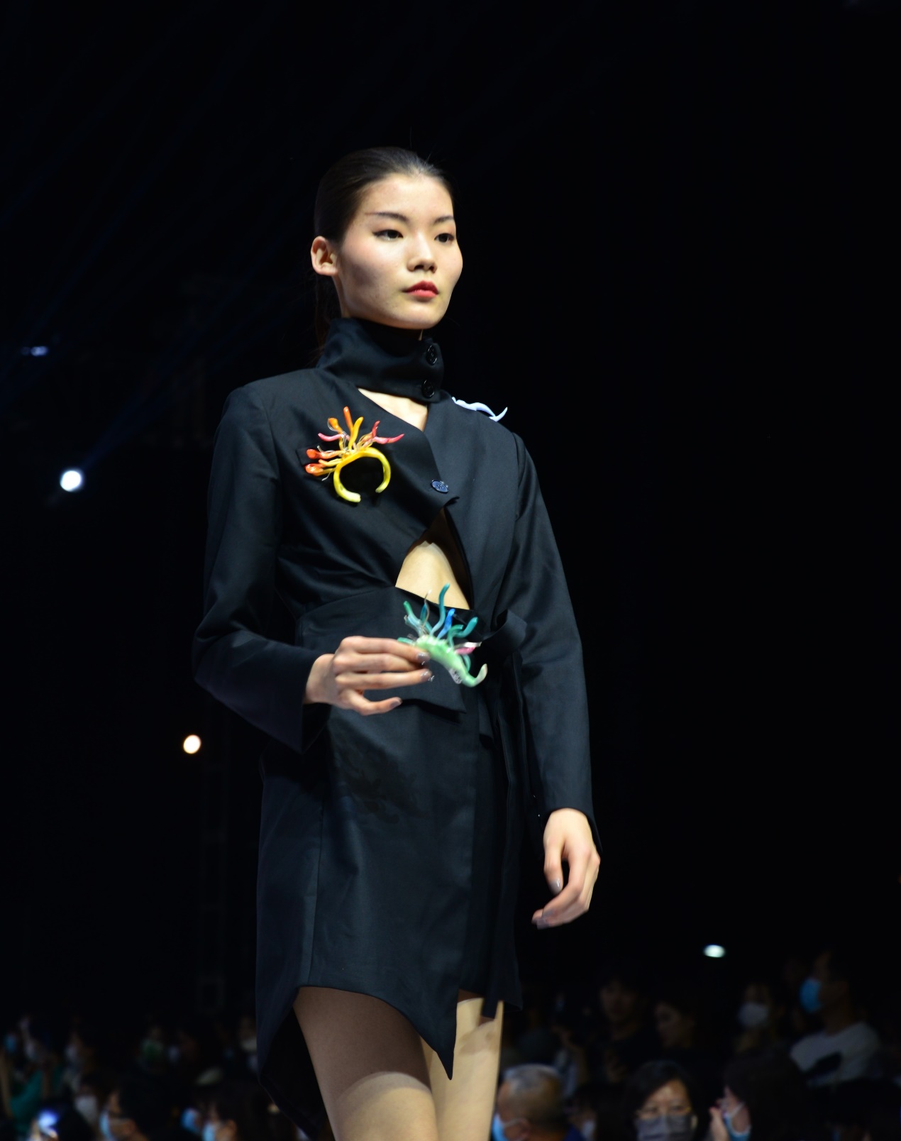 首饰设计展演呈现的是现代手工艺术学院首饰设计专业2022届毕业生的45套作品。年轻的首饰设计师秉承传统工艺美术与创新设计融合理念,以中华优秀传统文化创造性转化与创新性发展为创作方向,立足中华传统造物体系研究和“山东手造”文化传统,融入东西方文化碰撞的灵感,用现代设计语言阐述时尚文化潮流更迭,让传统技艺重新点燃生命力,让创新设计赋能美好生活。