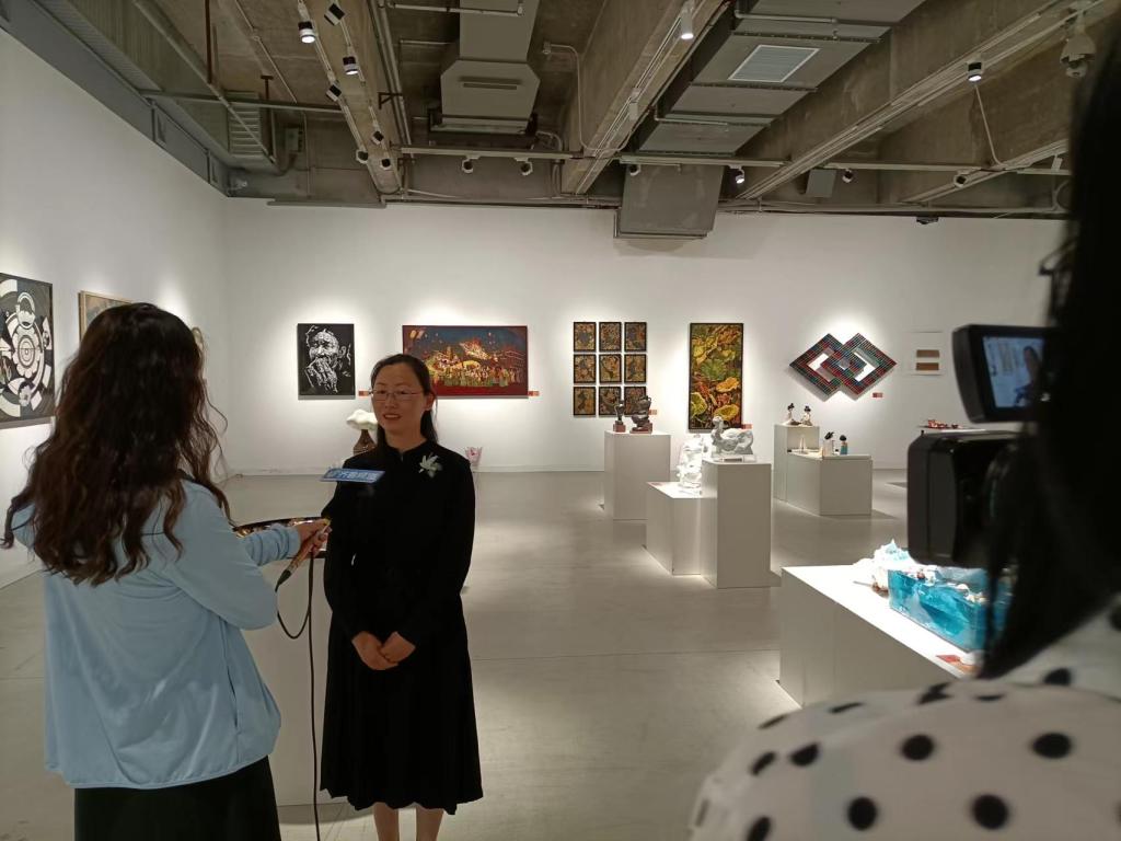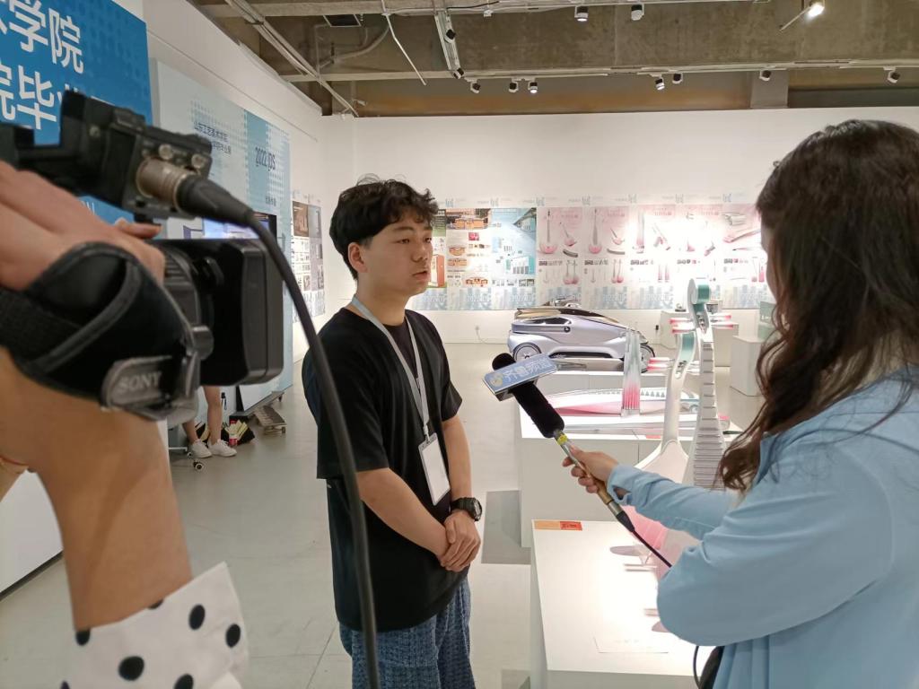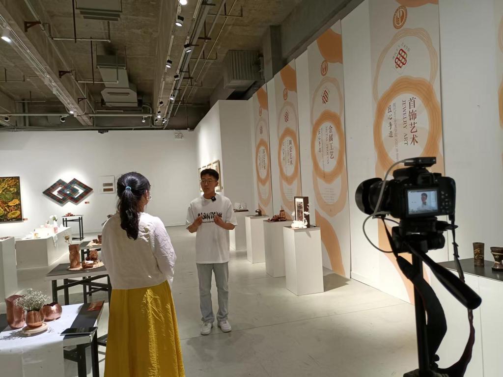 在长清校区美术馆,记者通过现场采访、视频拍摄等形式,专题报道2022届设计艺术博览会情况。