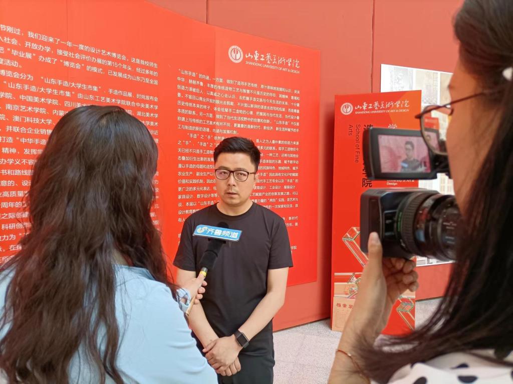 5月24日,山东电视台齐鲁频道、生活频道等媒体记者对“山东手造 青春力量”威尼斯7798cc2022年设计艺术博览会进行专题采访报道。